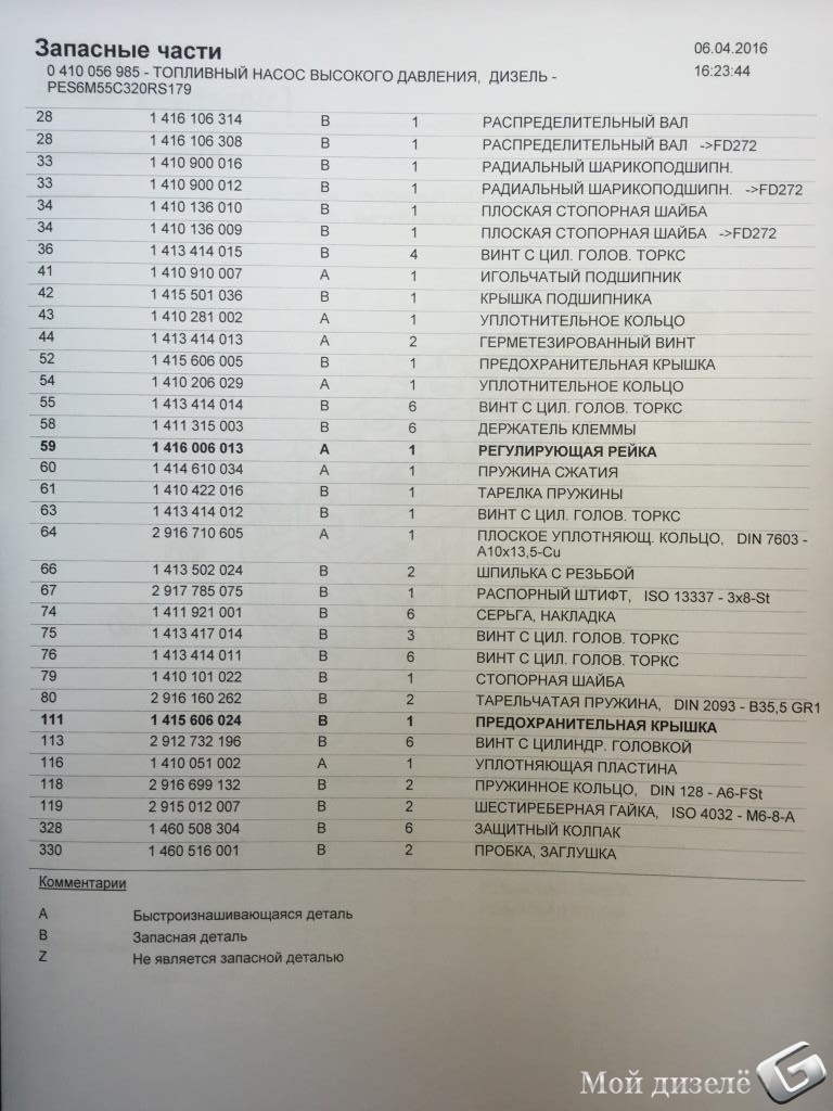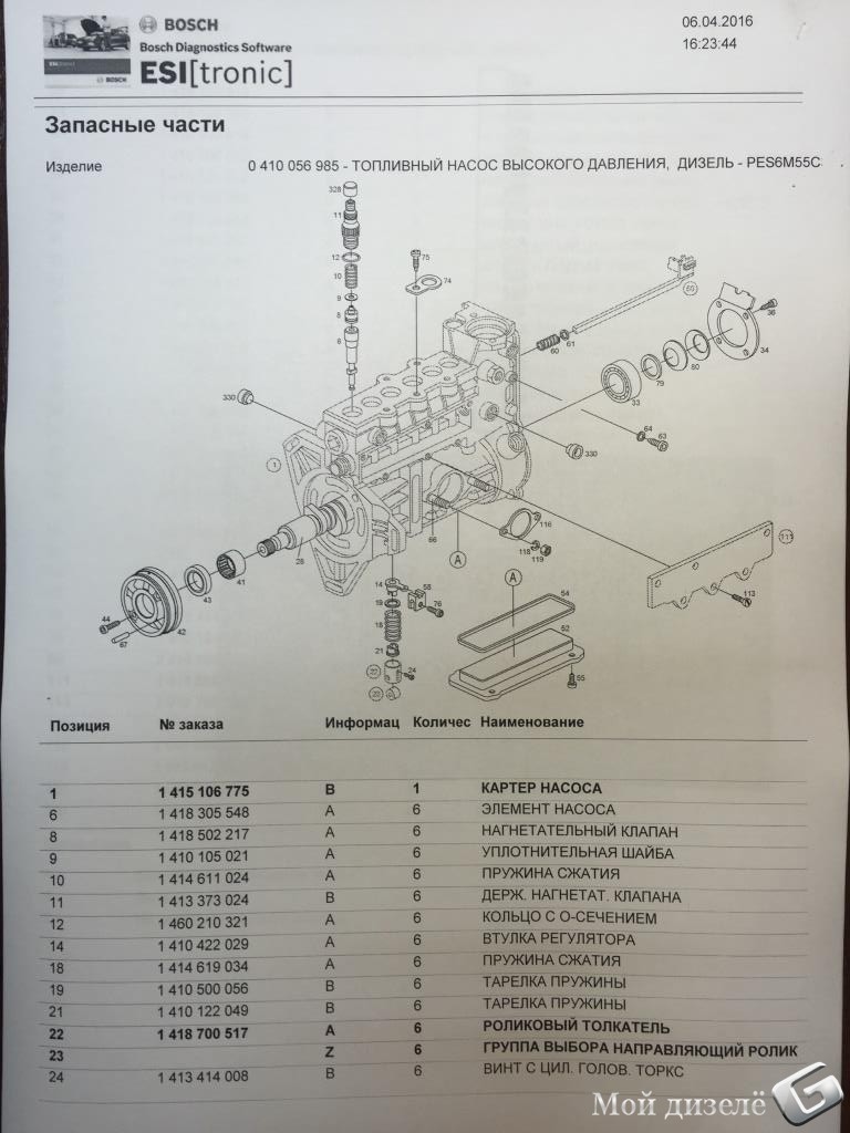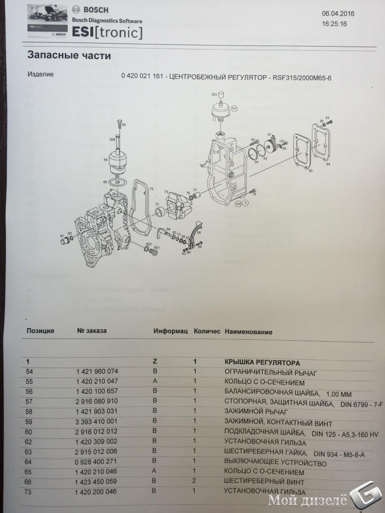 деталировка тнвд и форсунки двигателя 603972